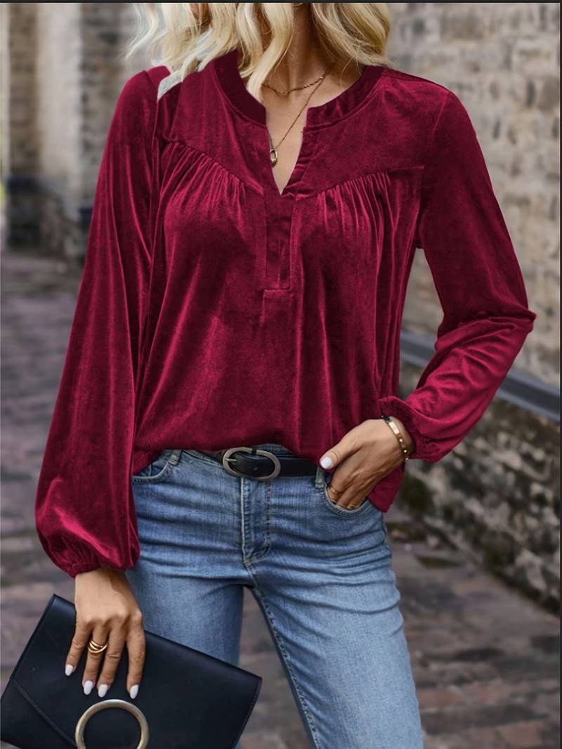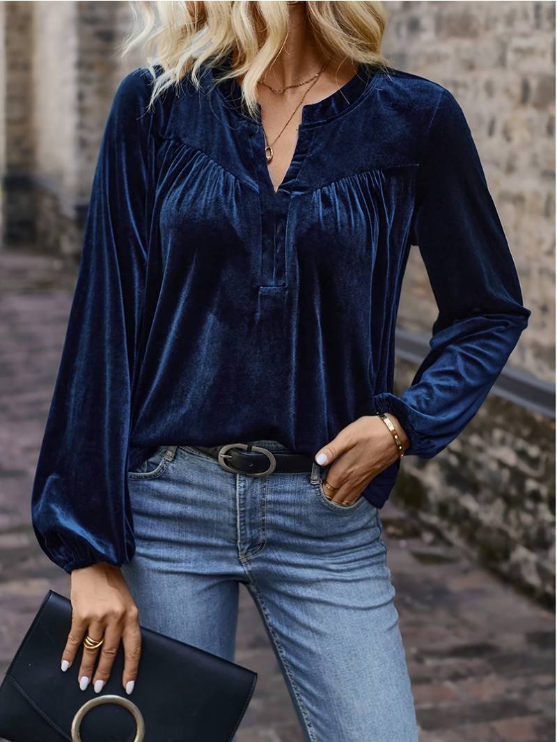 Lihi - Komfortabel Langermet Topp Med V-Hals