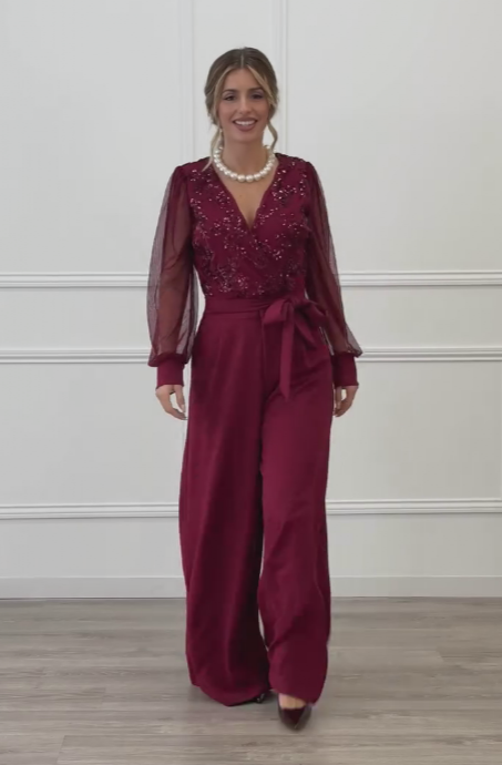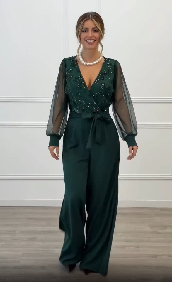 Meira - Jumpsuit Med Lange Ermer i Mesh Og Dekorasjoner