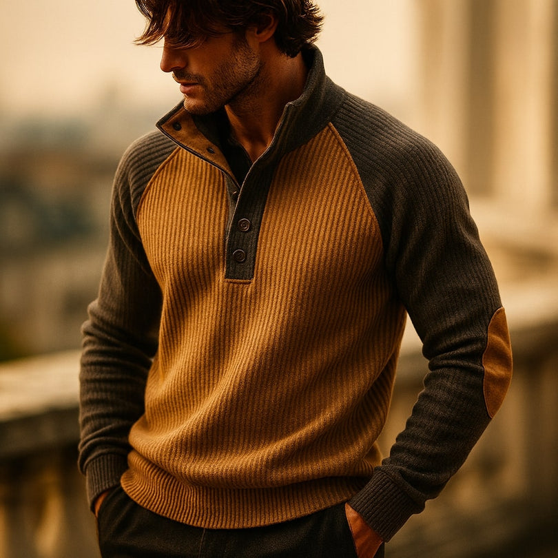 ✅Stilige kontrastpaneler med albuepatch-detaljer: Designet med kontrasterende ermer og diskrete albuepatcher for et moderne, robust uttrykk. Disse detaljene gir visuell interesse samtidig som de forsterker holdbarheten. Designet skiller seg ut uten å være påtrengende. En raffinert versjon av klassisk strikkevare.