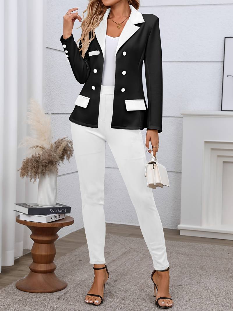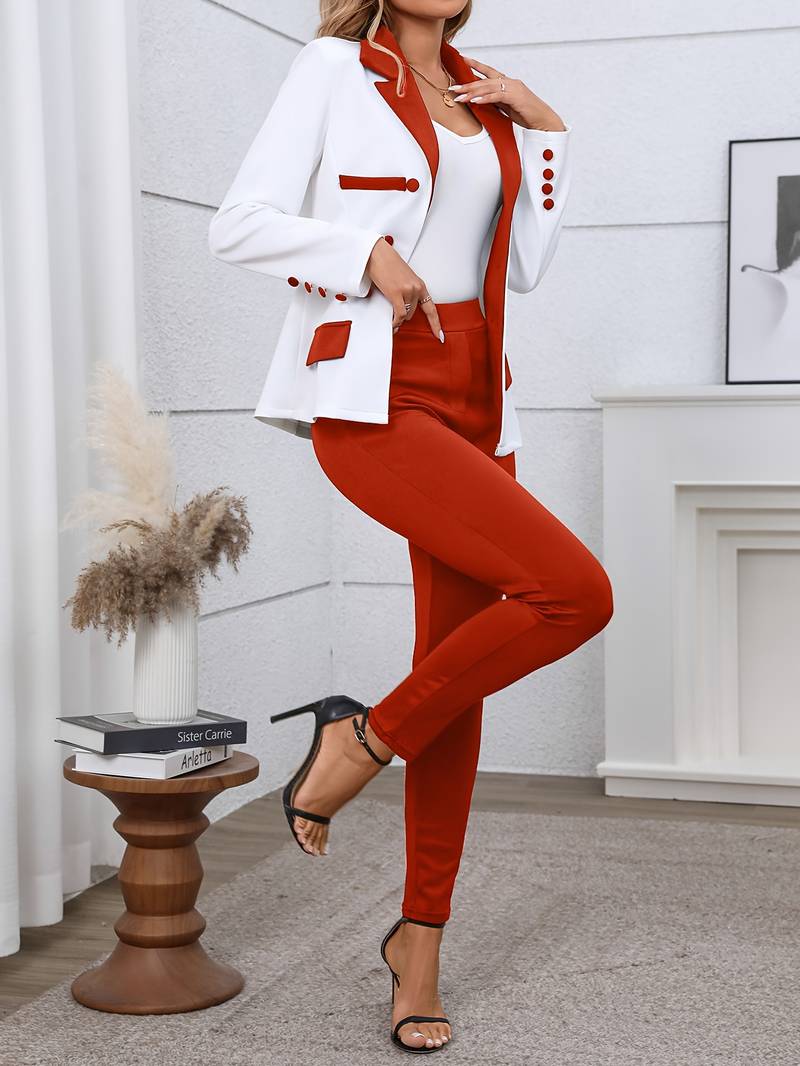 ✅Elegant skreddersydd silhuett: Denne todelte dressen er designet for å fremheve figuren din med en ren, strukturert passform. Den skreddersydde blazeren fremhever formen din, mens de tettsittende buksene skaper et elegant, langstrakt utseende. Sammen gir de et selvsikkert og polert utseende som passer for moderne kvinner.