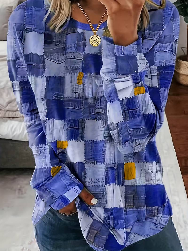 Unikt rutete patchwork-design: Denne toppen har et moderne rutete patchwork-mønster som umiddelbart skiller seg ut, samtidig som den er enkel å style. Den kunstneriske blandingen av farger gir dybde og personlighet til hverdagslooken din. Den er perfekt for å skape visuell interesse uten å være for dristig. Ideell for kvinner som elsker subtile statement-plagg.