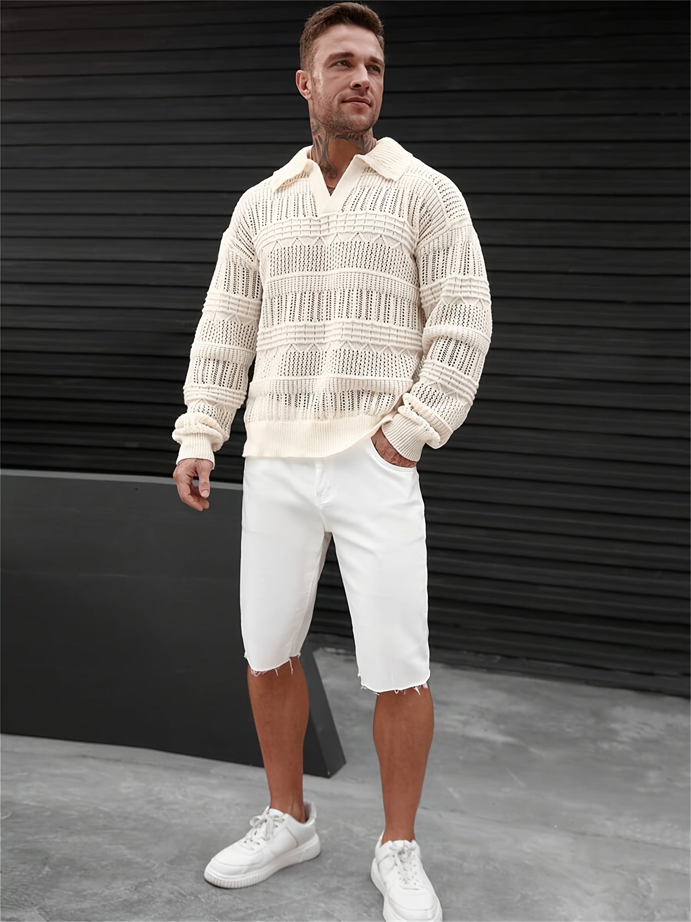 ✅Særpreget tekstur med utskjæringer: Skaper et pustende og iøynefallende mønster over hele genseren. Det åpne strikkedesignet sikrer luftgjennomstrømning, noe som gjør den perfekt for overgangsperioder. Det gir dybde og unikhet til en klassisk langermet genser. En raffinert detalj som skiller seg ut.